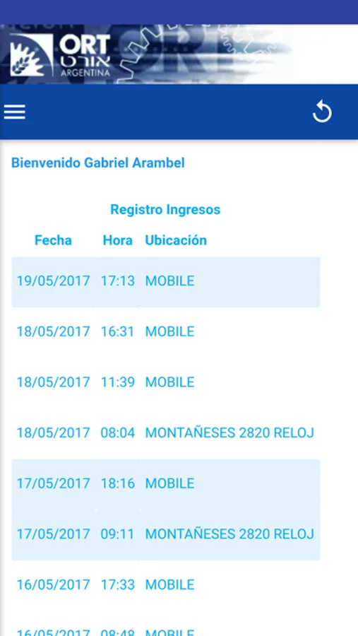 Aplicación para la consulta de ingreso del personal de las escuelas ORT