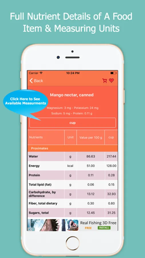 • Complete nutritional detail of each food item - (You will need internet for this feature only)
