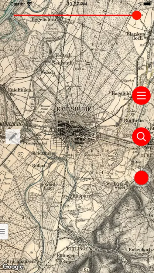 - Übertragung auf eine moderne Karte (Satellit, Hybrid, Gelände)