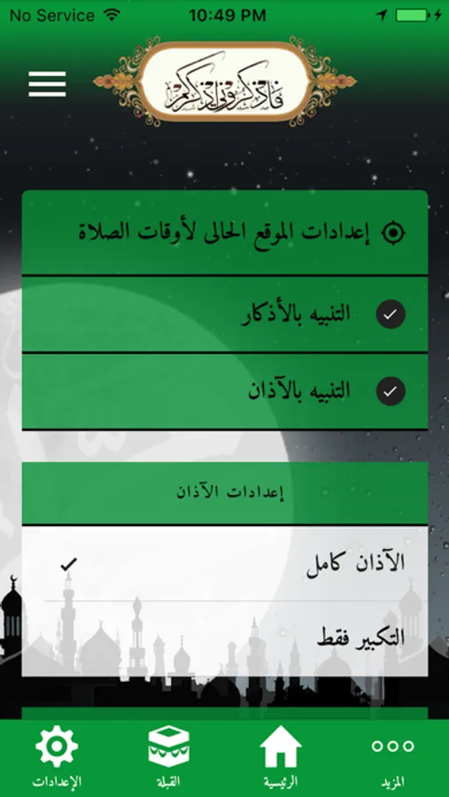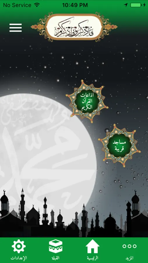 فاذكروني أذكركم يتيح أوقات الصلاة والقبلة و اذاعات القران الكريم أقرب المساجد لموقعك الحالى