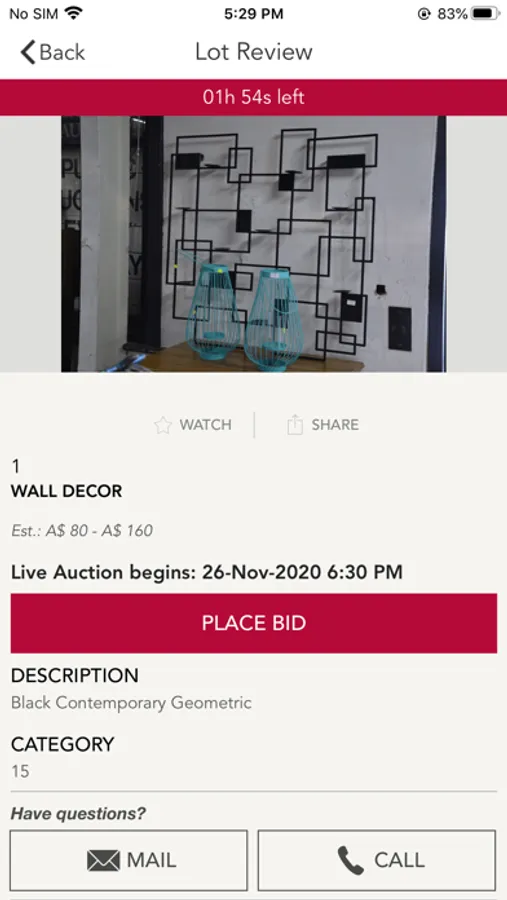 With this app you can register (with a valid credit card), view, bid live, leave absentee bids, watch lots, track your bidding history and view a calendar and past and future sales, all from your mobile device. You'll get push notifications and reminders to ensure you never miss a chance to bid.
