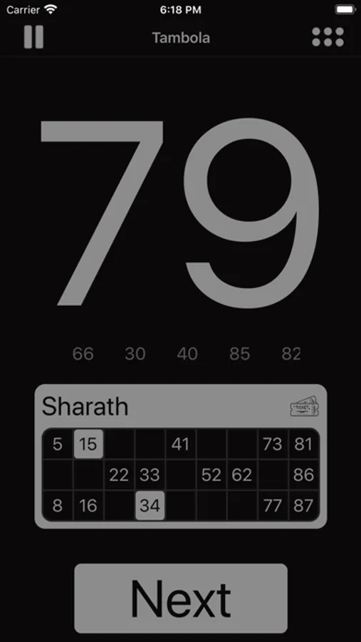 • Makes caller life easier as app checks 46 winning patterns (i.e, first line, corner, safe, fence, queen corner, king corner, etc) in all tickets when caller picks the number and notifies with winners' details in the caller board
