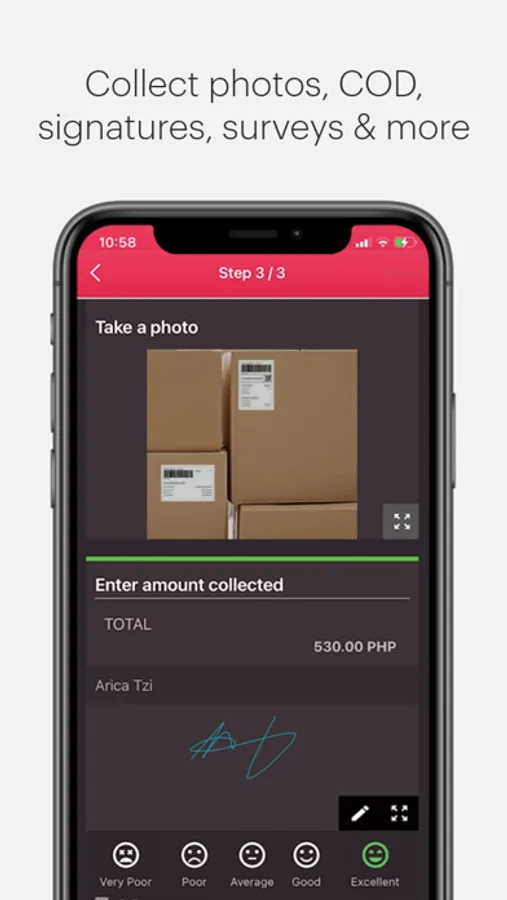 - Signatures, photos, delivery statuses, timestamps, and other activities recorded through the app is synchronized to the enterprise web portal.