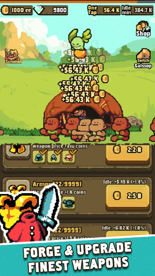Just tap and become the richest Blacksmith of the prehistoric era in this brand new pixel art tapping game! Craft weapons, armor, spell books, jewelry - sell your products and wears to grow your booming business!