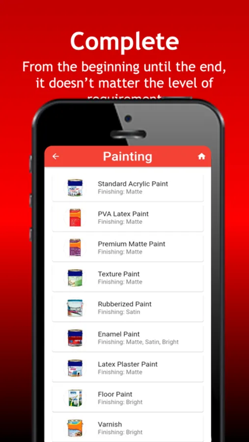 - Paint (quantity or volume of paint, volume of sealer, volume of varnish, quantity of mass, quantity of coats)