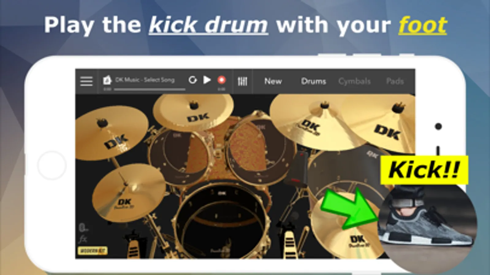 DrumKnee is the most realistic drums app. Now you can play the bass with your foot.