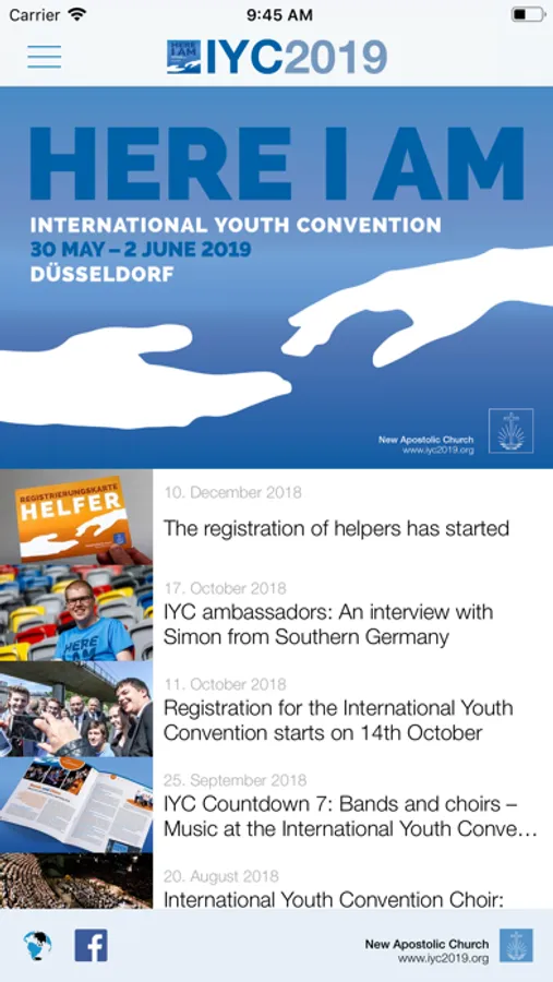 The official IYC2019 app informs about everything interesting in the time before the youth convention ... and the app will support the visitors in a variety of ways at the youth convention. In the coming months, updates will be provided with practical new functions, which shortens the wait time until the youth convention.