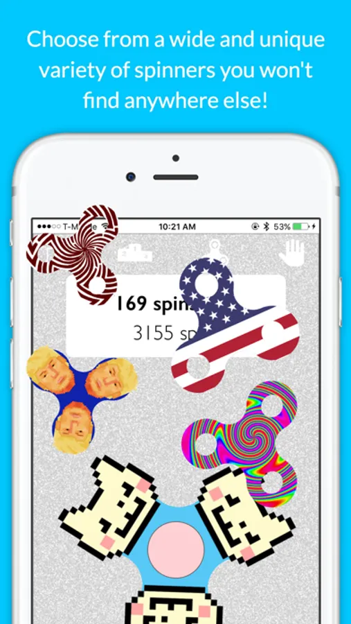 It's like having an actual fidget spinner on your phone! Use actual hand motions and touch to spin your fidget spinner just like the real thing.