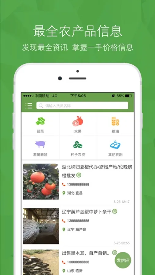 农产品信息网,以帮助中国农民解决农产品销售问题为已任,是一个农产品网上信息交易平台,同时提供各类农产品供求信息。农产品种类繁多,可满足您多重采购需求,由各色农产品基地提供最新价格行情,各生产基地的农户或经纪人直接发布的一手资源信息,产地直供,真实可靠。帮助买家找到好货源,帮助卖家找到好买主,手机一键联系生意伙伴,帮助你快速拓展你的生意圈!