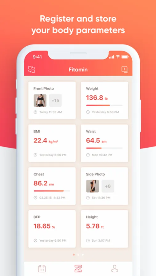 Fitamin is an indispensable application for everyone who wants to be in shape, regardless of whether you want to control your weight, keep a diet or exercise in the gym to gain muscle mass. You no longer need to record your body measurements on paper or use several different instruments – Fitamin makes it possible to store all the parameters of your body in one place and always near you!