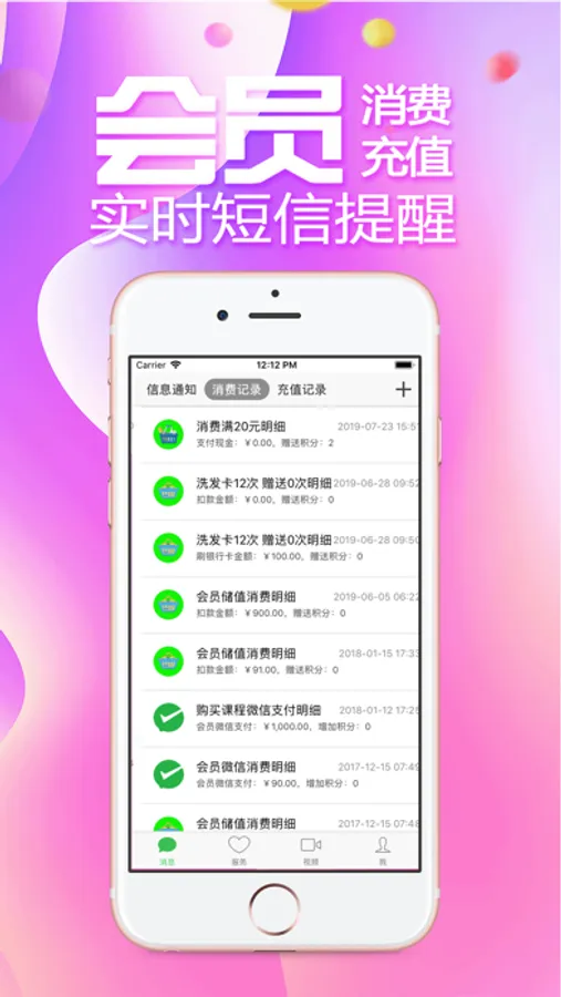 【会员营销基础功能】储值通手机APP主要提供会员储值、会员积分、会员计次、实时短信提醒等会员管理的各种功能,可以多手机同时使用,数据实时同步,门店可以发布图文、图片、语音、视频等信息通知给会员。