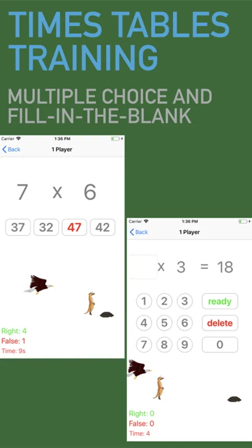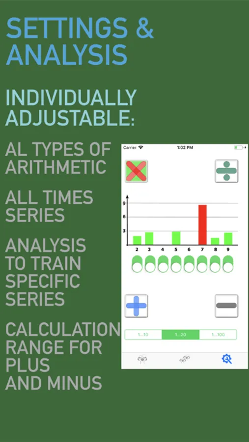 This app is made to exercise multiplication up to 100 and mental arithmetic with children aged from 6 to 10 years. It is deliberately kept simple and allows monitoring of the learning progress, and focused practicing of single rows of numbers. Also different difficulty levels are supported.