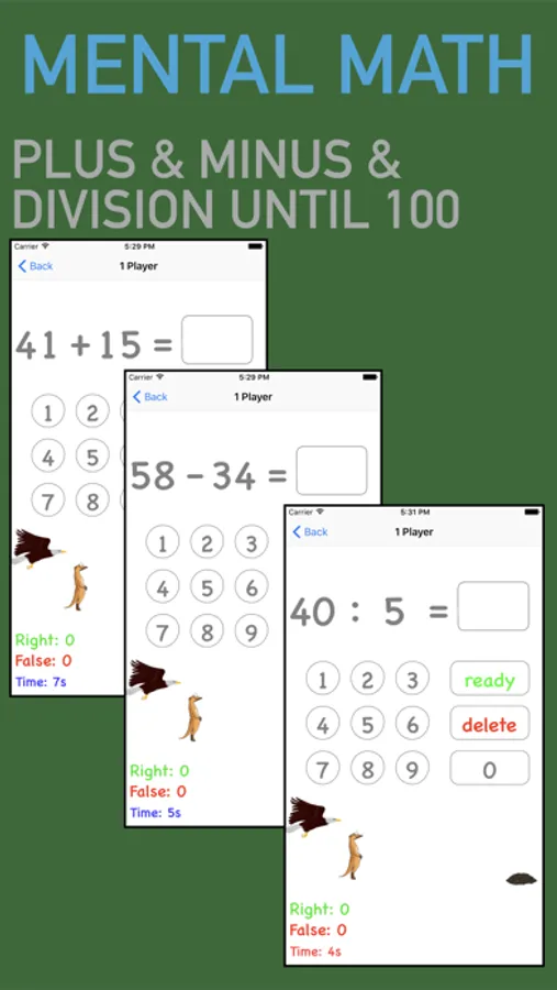 The motivation goes about collecting points: the kid saves a meerkat. The animation is not the main focus of the app. The app is about a high number of calculations to be solved. According to our experience, learning mental arithmetic is a process, were extensive computer animations, have less positive effect. Educational games can be used to supplement here, but can not replace the constant exercise. This app is made to ensure that the child can solve a high number of problems alone and in a silent atmosphere. It is suitable for use when traveling. But it needs to be emphasized that the motivation has always to come from the parents themselves.