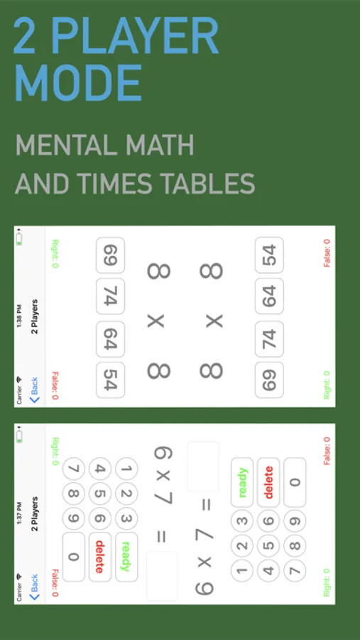 There is also a mode in which two players can compete against each other at the same time. This is suitable for a calculation speed test while the a parent and the child have to solve the same calculation. It can also be used for two kids doing the same calculation.