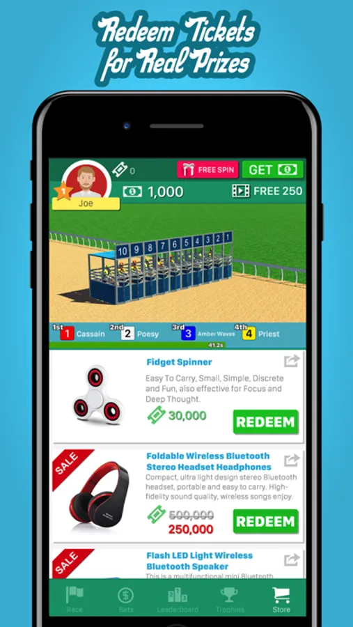Playing Horse Racing Pro does not imply future success at “real money gambling”. Redeemable prizes are subject to change and are limited to 3 transactions per user per item.