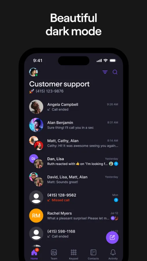 No more jumping between different apps to piece conversations together. Call logs, call recordings, and transcribed voicemails appear alongside texts in one seamless conversation.