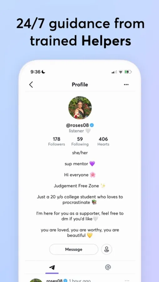 We have over 10 trained mentors on Sup, eager to help you achieve happiness. Just look for users in the app with a blue verified checkmark next to their name.
