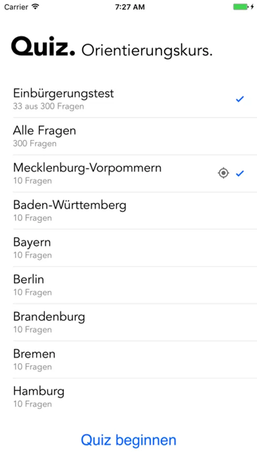 Mit Quiz.Orientierung bist Du bestens auf den Einbürgerungstest vorbereitet. Werde Profi und meistere bis zu 460 Fragen.