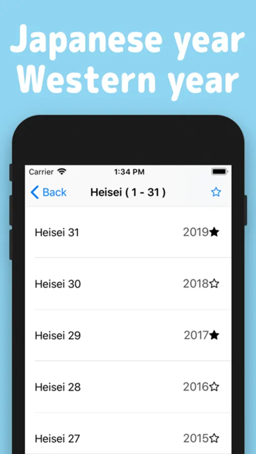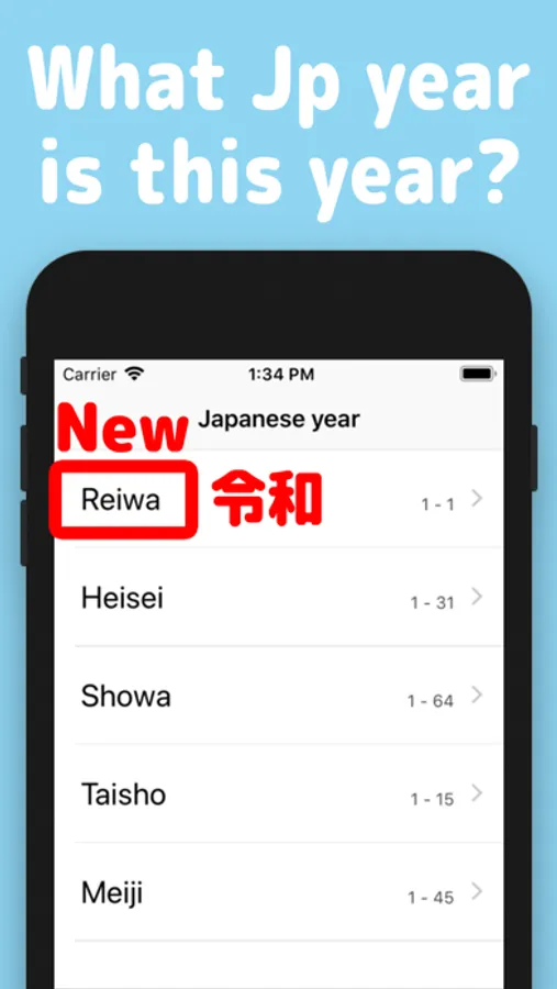 The app is the list of Japanese year and Western year. Japan has the eras such as Meiji, Taisho, Showa, Heisei and Reiwa.