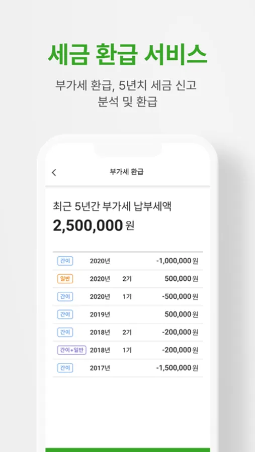 - 5년치 세금신고 분석/환급 기능 제공