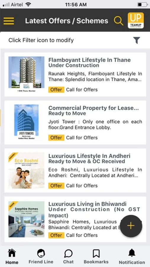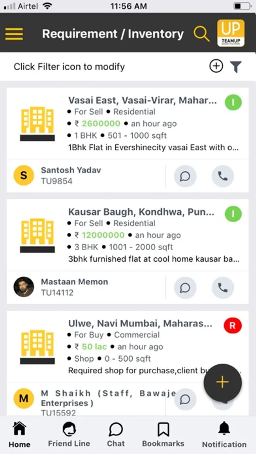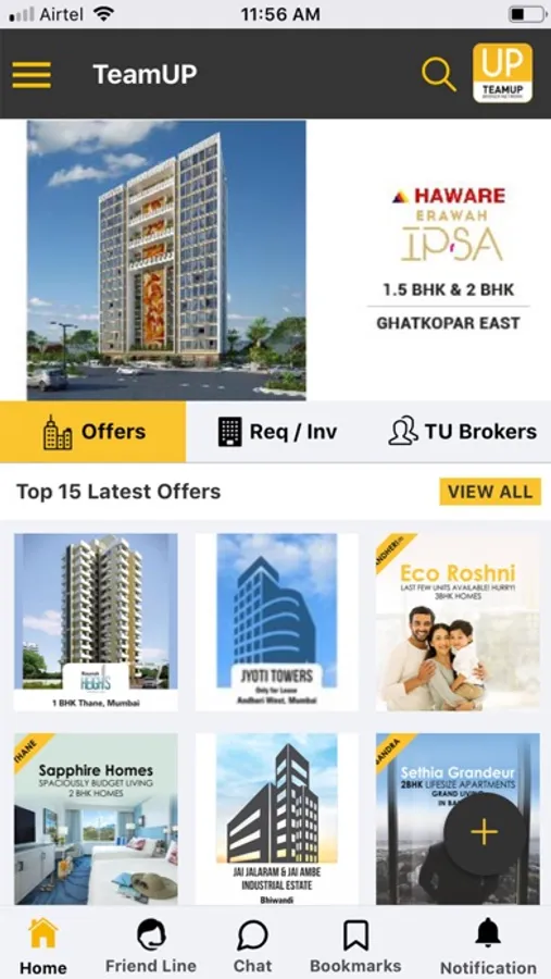 TeamUp App is specifically designed for Real Estate Industry. It is basically a platform, to connect authorized and reputed Brokers & Builders all across nation. TeamUp is a multi-channel unification platform for Developers, Brokers and Customers. TeamUp believes in chain working system, aiming for more than 30000 Brokers and 500 Builders starting from Mumbai and spreading across the country. TeamUp is a one stop shop for any and every need of Developers, Brokers and Customers.