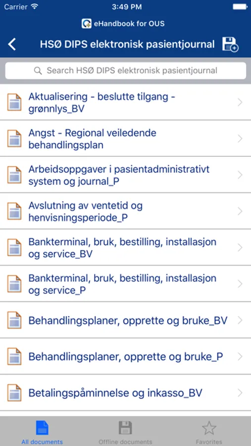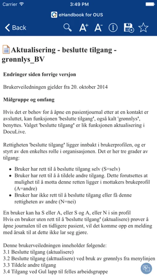 Brukere som ikke er ansatt ved OUS, må vite at dokumentene er skrevet for internt bruk i sykehuset og at form og innhold kan være preget av det. Opplysninger i appen må ikke brukes istedenfor kontakt med lege. OUS tar ikke ansvar for bruk av innholdet utenfor eget sykehus.