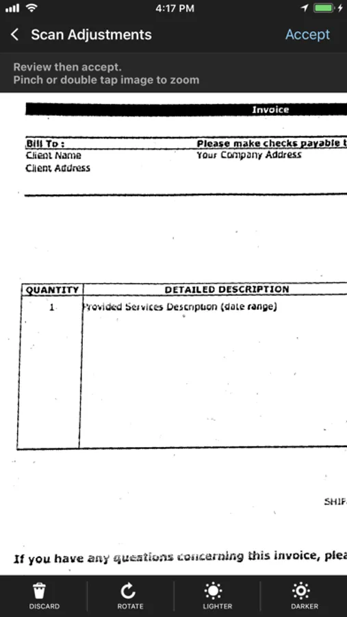 * Compresses document image(s) for fast transmission and minimal data plan usage