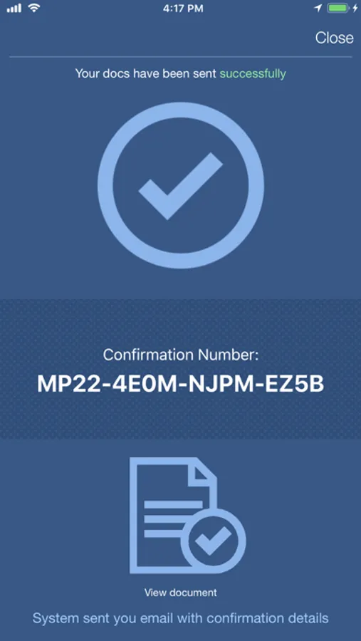 Upon submitting documents, and accident and/or claim information you will receive a unique confirmation number and email notification enabling you to view your images for up to 14 days.