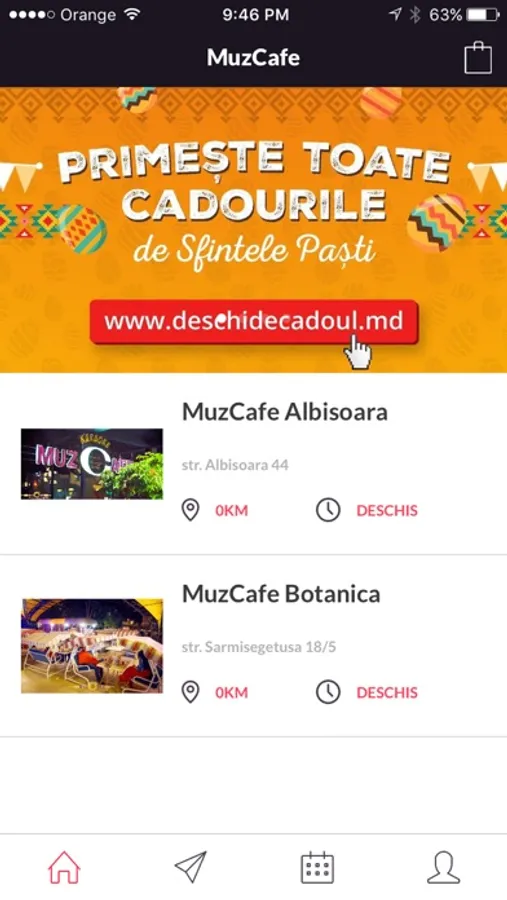 Aplicaţia este destinată fidelizării oaspeţilor reţelei localurilor MuzCafe din Republica Moldova. Rezervează rapid o masă sau fă o precomandă, savurează cele mai noi bucate din meniu și beneficiază de promoţiile valabile în reţea. Cu Muzcafe App e simplu să iei legătura directă cu personalul administrativ fără a cere prezenţa fizică în local sau fără a apela administraţia. Totodată, poți să-ți înlocuieşti cardul fizic de fidelizare, iar aplicaţia are grijă să-ți ofere aceeaşi reducere. Tot ce trebuie să faci e să introduci codul cardului tău. E simplu, nu? Ai totul la îndemână într-o singură aplicație mobilă! E comod, ușor de utilizat, modern şi eficient. Bun venit la MuzCafe!