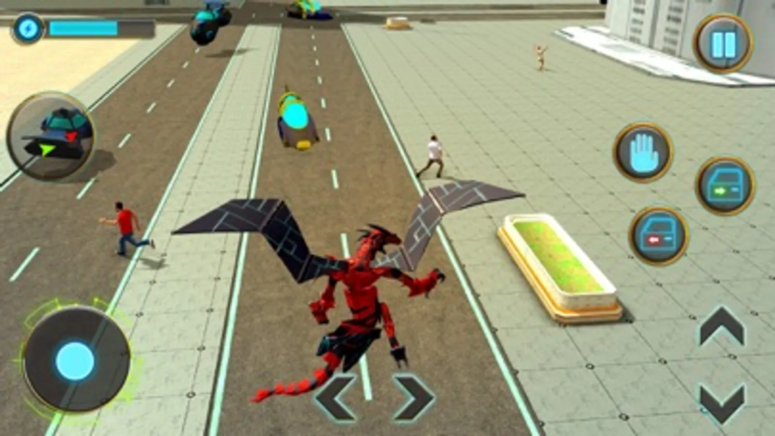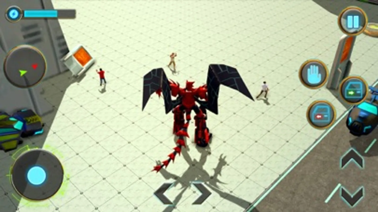 This game fuses futuristic elements of robots and androids, with medieval elements of mythical creatures! Fly as an incredible Transform Robot Dragon and wreak destruction and havoc! Combine the magic of ancient dragons with futuristic technology and weapons. Experience the folklore that surrounds dragons in a modern, urban city. Fly over a bustling city--your humble abode--frightening pedestrians, stopping traffic, causing car crashes, and smashing into airplanes and helicopters! You have a bold message: this city is yours for the taking, and no puny humans can defeat you! Destroy bridges and skyscrapers--all your modern enemies. Fight police, military commandos, and different heroes who dare to take on your power! All of this is packed in a massive destruction game!