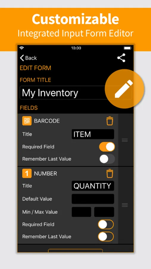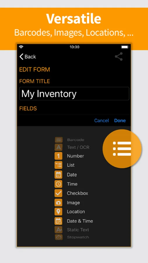 • Captures barcodes, NFC tags, images, timestamps, texts, location data and numbers