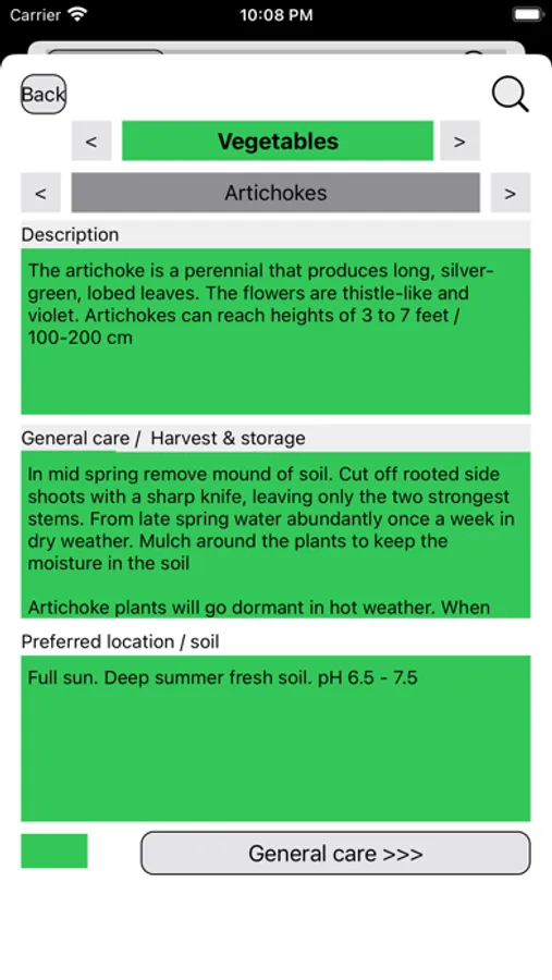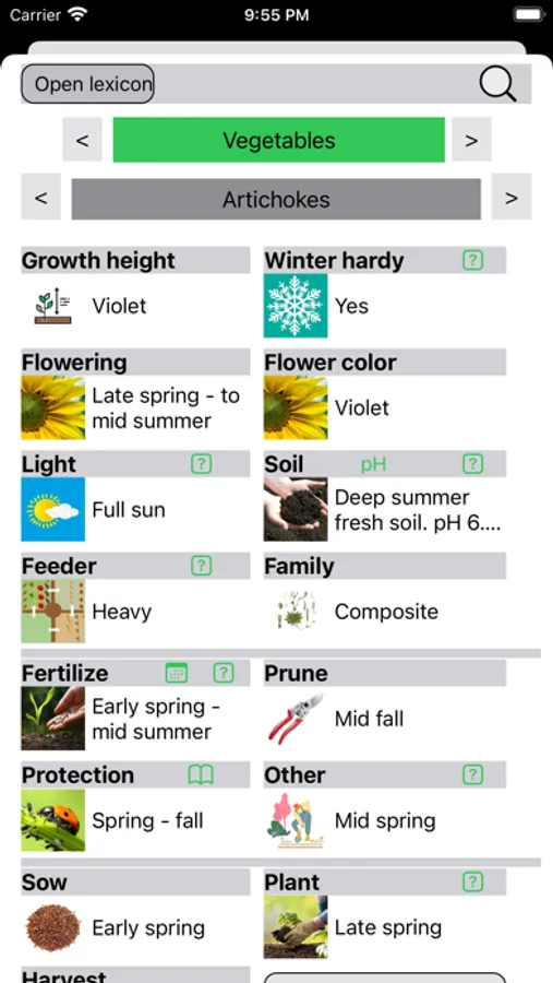 The app includes a plant encyclopedia, structured like the garden diary, with explanations of each topic from sowing to harvesting, all based on organic gardening principles. It includes 300 plants from the categories berries, herbs, flowers, fruits, vegetables, green manure, hedge, climbing plants, and ground cover.