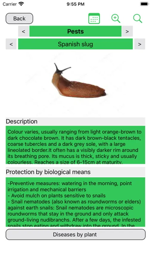 You will also receive assistance in identifying plant diseases. For this purpose, there is a plant protection lexicon, which describes the 75 most common diseases pictorially and in text form and describes biological protection measures. An advanced search function by color or pest type helps you in your search.