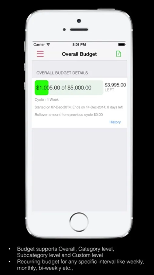 •Recurring budget for any specific interval like weekly, monthly, bi-weekly etc.,