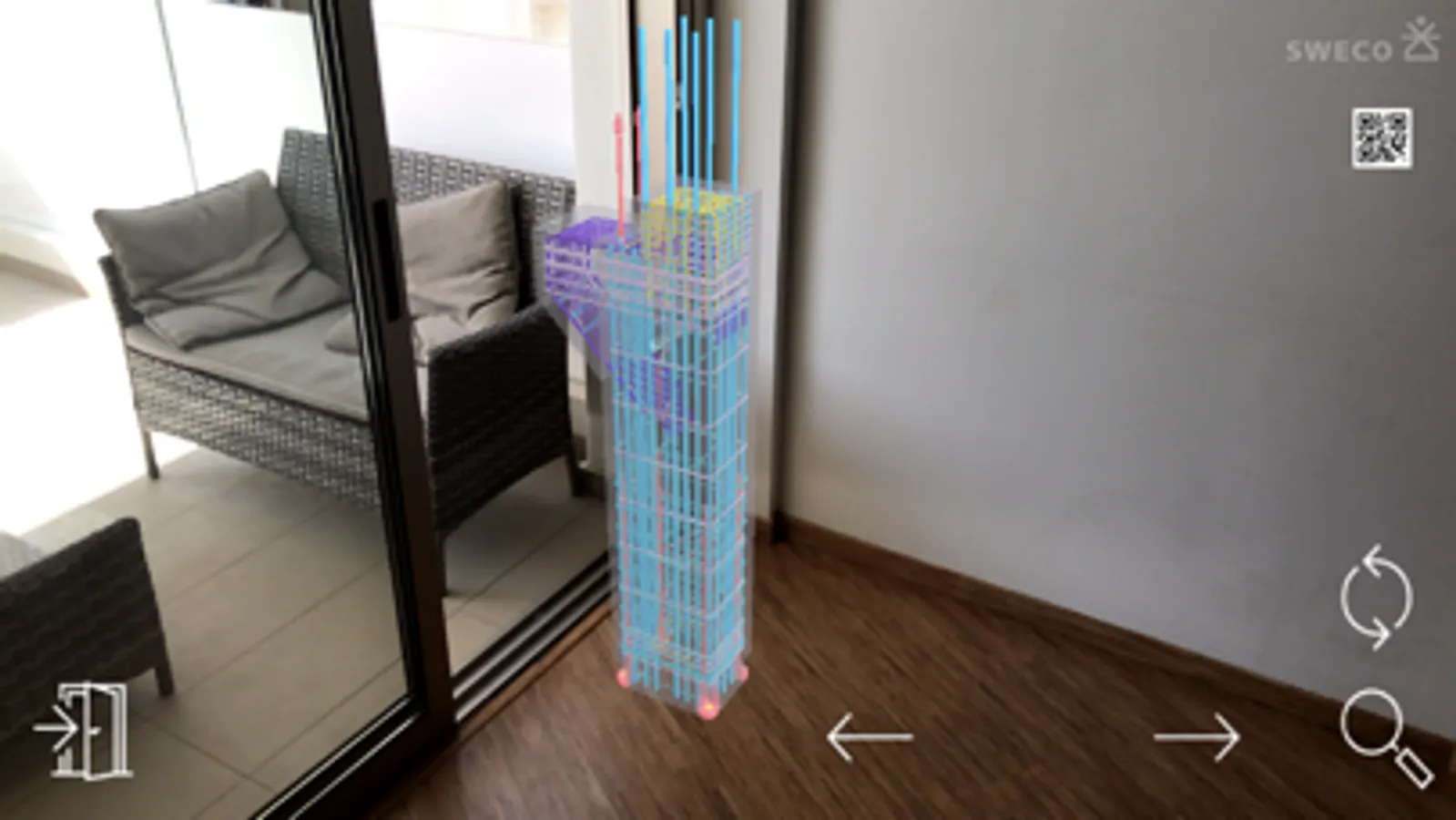 Brings the design alive! Scan a QR code provided by Sweco and the app will download the 3D model from cloud which can then be placed in the environment as a hologram.