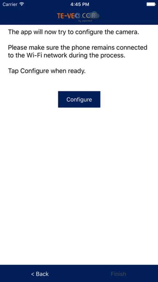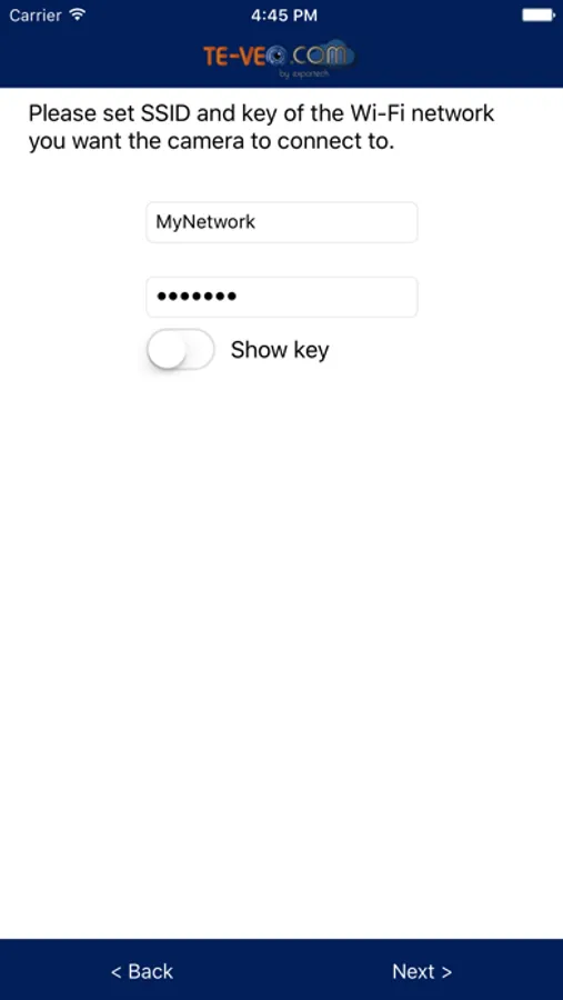 Configure your Te-Veo Wi-Fi camera's SSID and network key with ease and just with a couple of taps!
