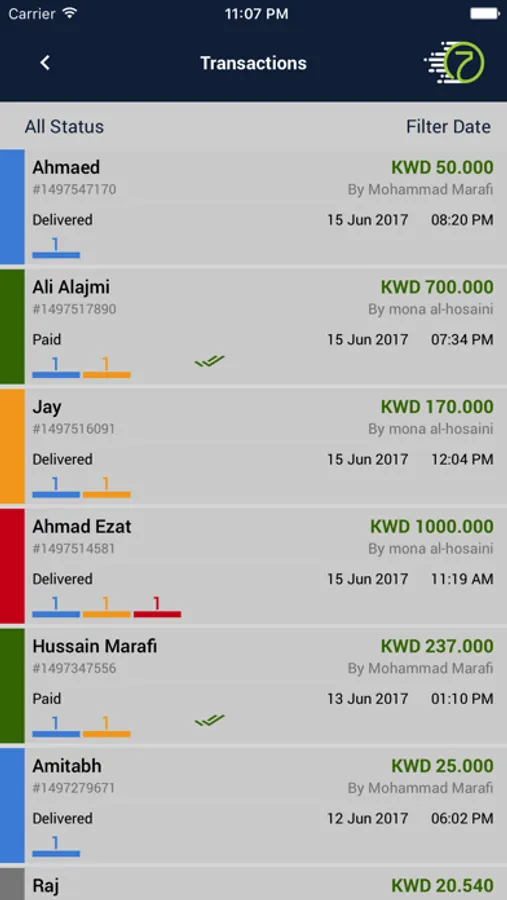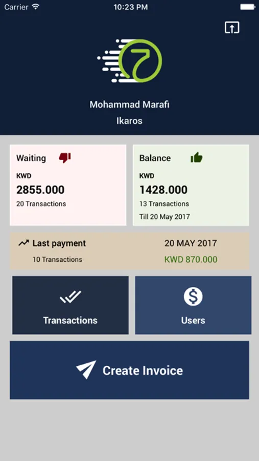 - My Transactions – View your list of sent out invoice with a snapshot of your customer’s bill activity