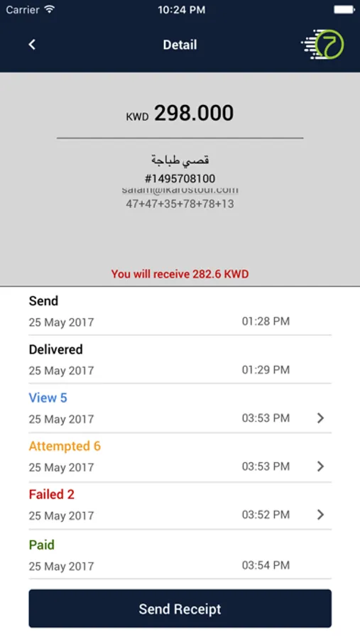 - Send Invoice – Send out an invoice/bill in two simple steps, locally via email & SMS
