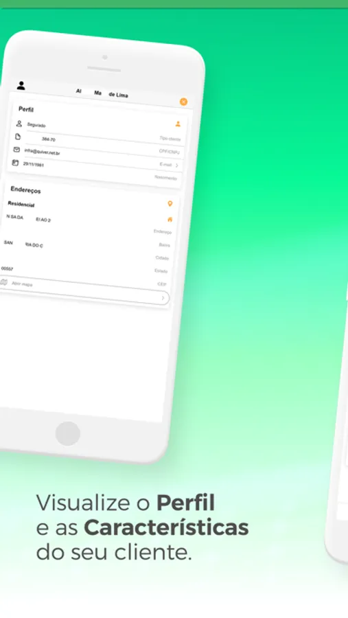 - Consulte o perfil do seu cliente, suas características, seus contatos e endereços.