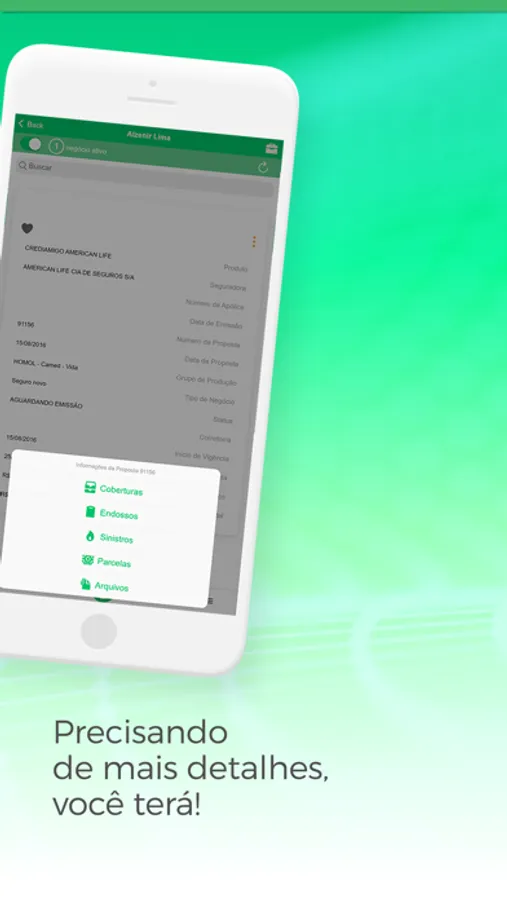 Filtro de Documentos ativos e inativos, a fim de manter um histórico dos documentos do cliente; de parcelas pagas, agendadas e vencidas, de Sinistros em andamento e finalizados; Informações dos endossos realizados; Baixa de Arquivos (Avulsos e Vinculados): Arquivos correspondente ou não a uma Apólice.