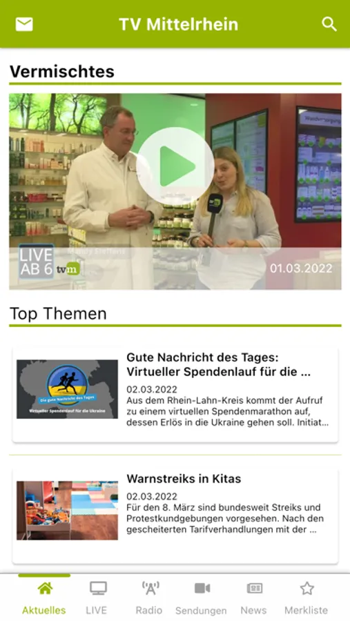 Mit der tvm-App holst du dir Live-TV und die TV-Sendungen des TV Mittelrheins aufs Smartphone oder Tablet.