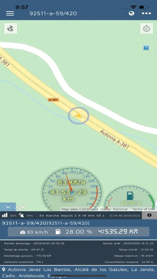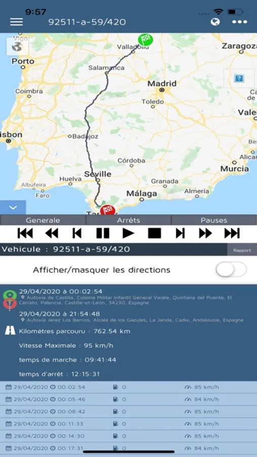 - Itinéraire et historique d'un véhicule