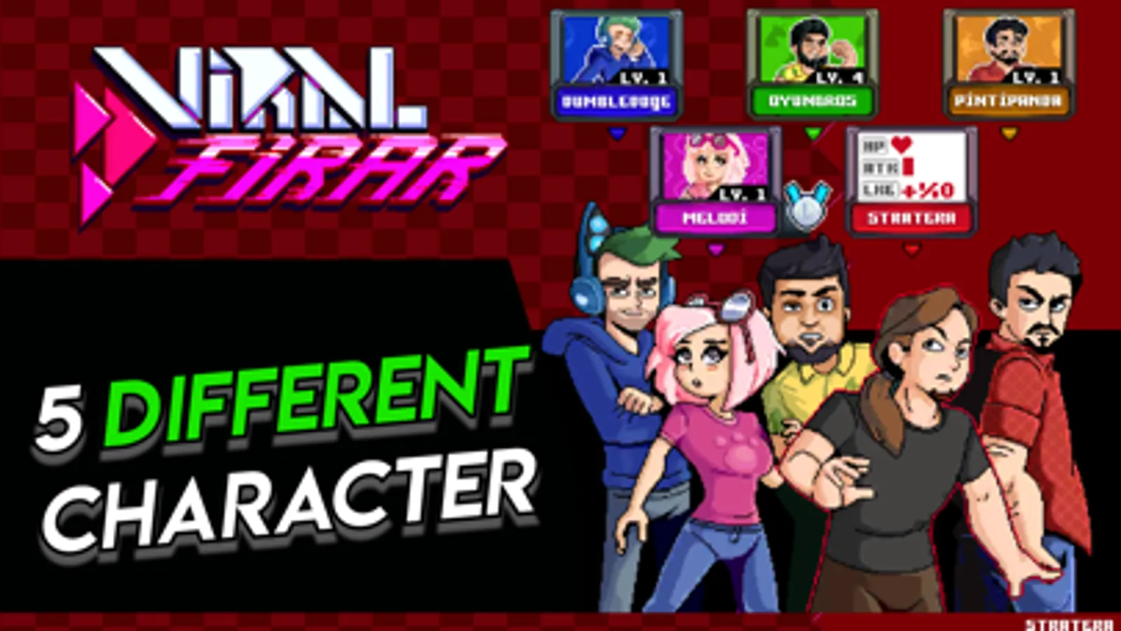 Choose your runner from PintiPanda Tuna Akşen - Melodi Kızılgün - Stratera Dora Özsoy and Dumbledoge Kemal Gökseloğlu and develop their stats with every run!