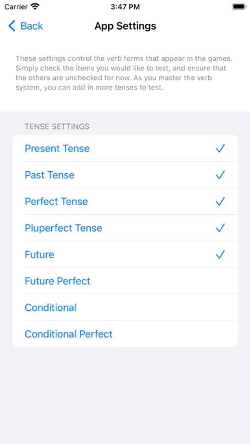 As well as a verb reference, there is a set of intensive verb drill activities to quiz your conjugation knowledge, including: