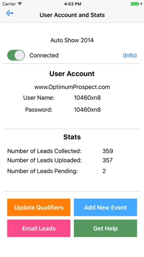 The exhibitor has the option to customize qualifying codes and/or survey questions, enter a lead by badge number, enter a lead manually without an ID or QR code, add notes, and even email the leads directly from the device at the end of the event. Although internet connectivity is not required during the event, connecting to a wireless network allows the leads to be saved in real-time to the personalized, secure web portal www.OptimumProspect.com, to be downloaded daily or at the end of the event.
