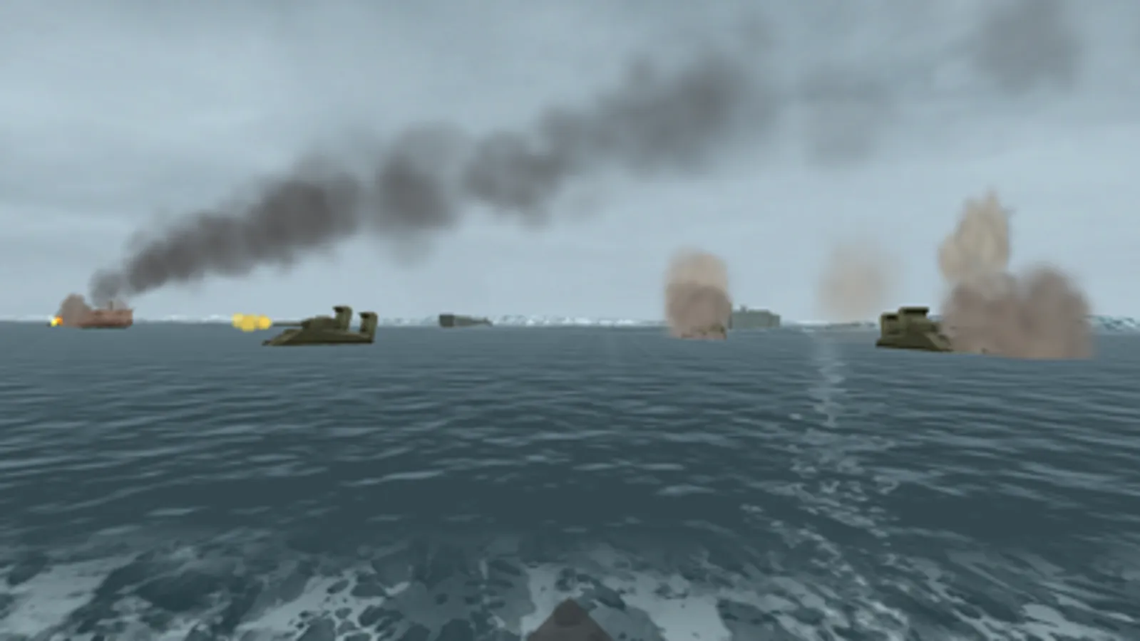 Move around on the beach and the tidal flat in this area and experience the naval bombardment, the bombing and the rocket launch before the amphibious assault begins. See how the LCTs (Landing Craft Tank) disembarks three Sherman tanks each at the water’s edge more then 300 m from the high water mark. Observe also how the many LCVPs (Landing Craft Vehicle Personnel) delivers the infantry in the surf while under heavy German artillery, mortar and small arms fire.