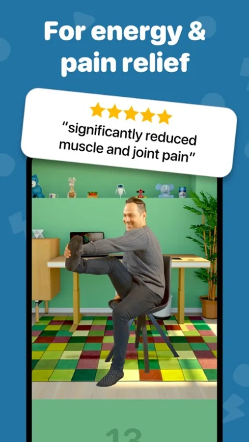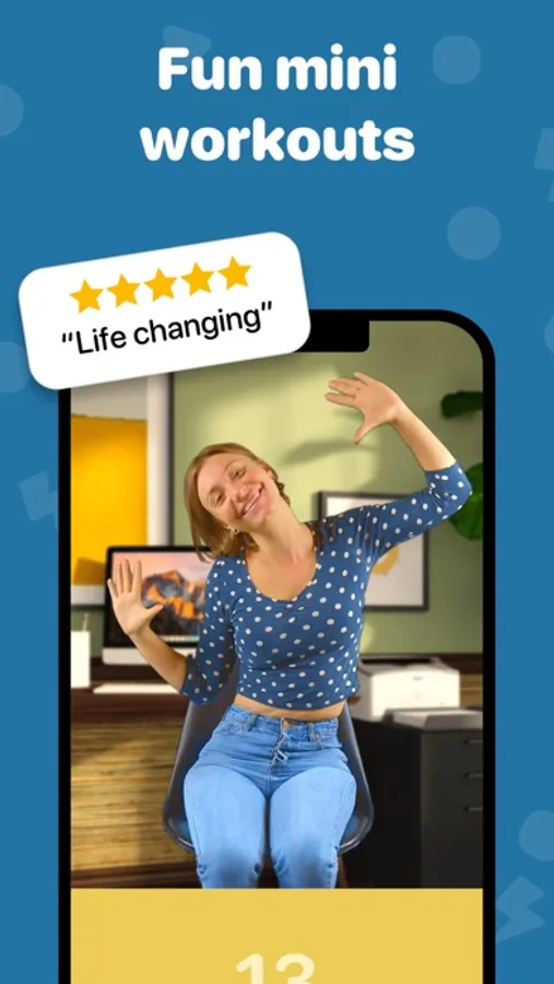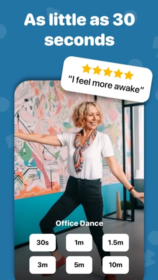We've all been there: too much sitting, not enough moving. The result? Aches, pains, and low energy. But Wakeout is here to change all of that. Our carefully crafted activities are designed to fit into your daily routine seamlessly, turning mundane moments into opportunities for rejuvenation and invigoration. You can get a mini workout done in as little as 30 seconds.