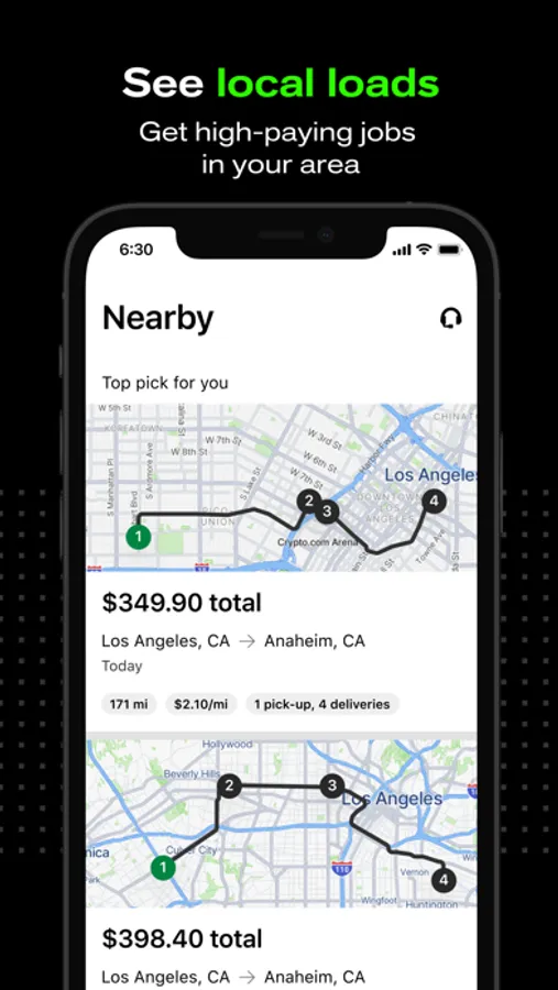Getting local jobs has never been easier. You’ll get nearby loads dispatched directly to your phone with the payout amount included. If you want the job, just tap to accept.