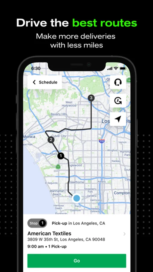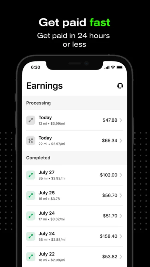 Maximize earnings with optimized routes and turn-by-turn directions, all without ever leaving the app.