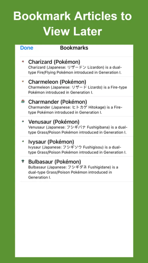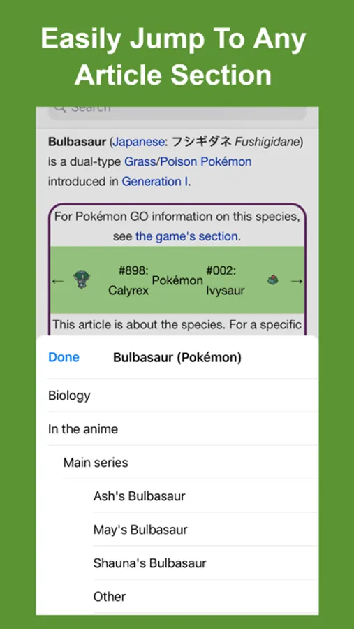 - Offline Viewing: With the Bulbapedia Pro in app purchase, you can view articles offline anywhere with or without an internet connection.